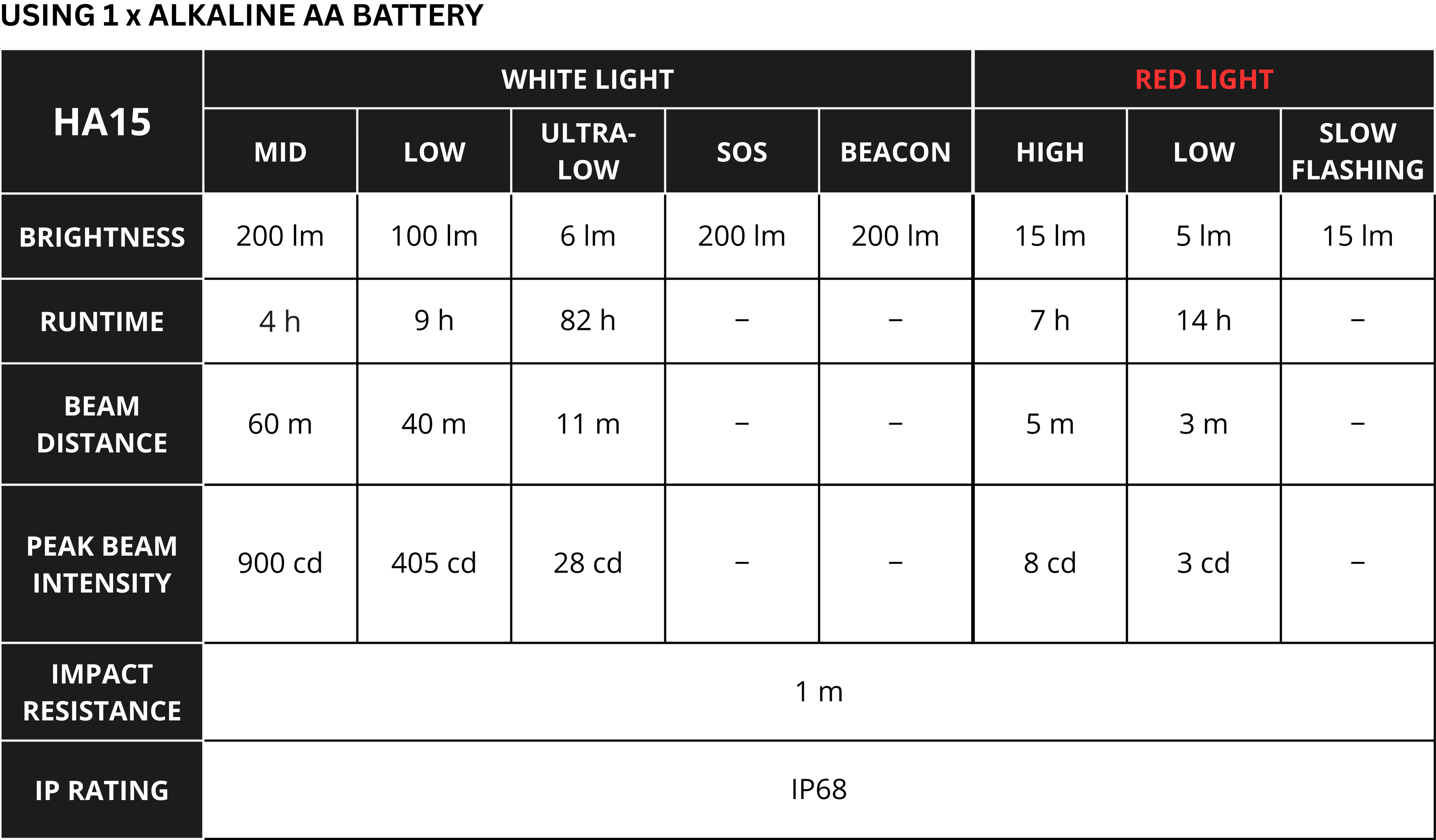 HA15 UHE is a compact dual-power headlamp designed for reliable lighting during outdoor activities and everyday use. It delivers up to 400 lumens using a 6-core NiteLab UHE LED system paired with a wide, even beam for close-range and mid-range visibility.